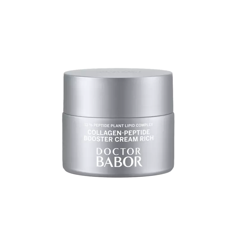 Die DOCTOR BABOR Collagen-Peptide Booster Cream Rich ist eine extra reichhaltige Anti-Age-Creme für trockene, anspruchsvolle Haut, die mehr Komfort und ein straffer wirkendes Hautbild sucht. Sie kombiniert einen Peptid-Pflanzen-Lipid-Komplex (13%) mit pflegenden Lipiden wie Squalan und Sheabutter, damit sich die Haut glatter, elastischer und besser „gepolstert“ anfühlt.