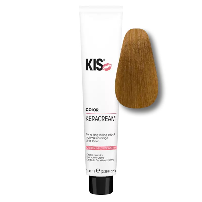 KIS KeraCream Color 7T ist eine permanente Creme-Haarfarbe im Ton Mittelblond Tabak. Die Nuance wirkt natürlich und leicht warm mit „tabakiger“ Tiefe – ideal, wenn du ein ruhiges Blond suchst, das nicht goldig knallt.