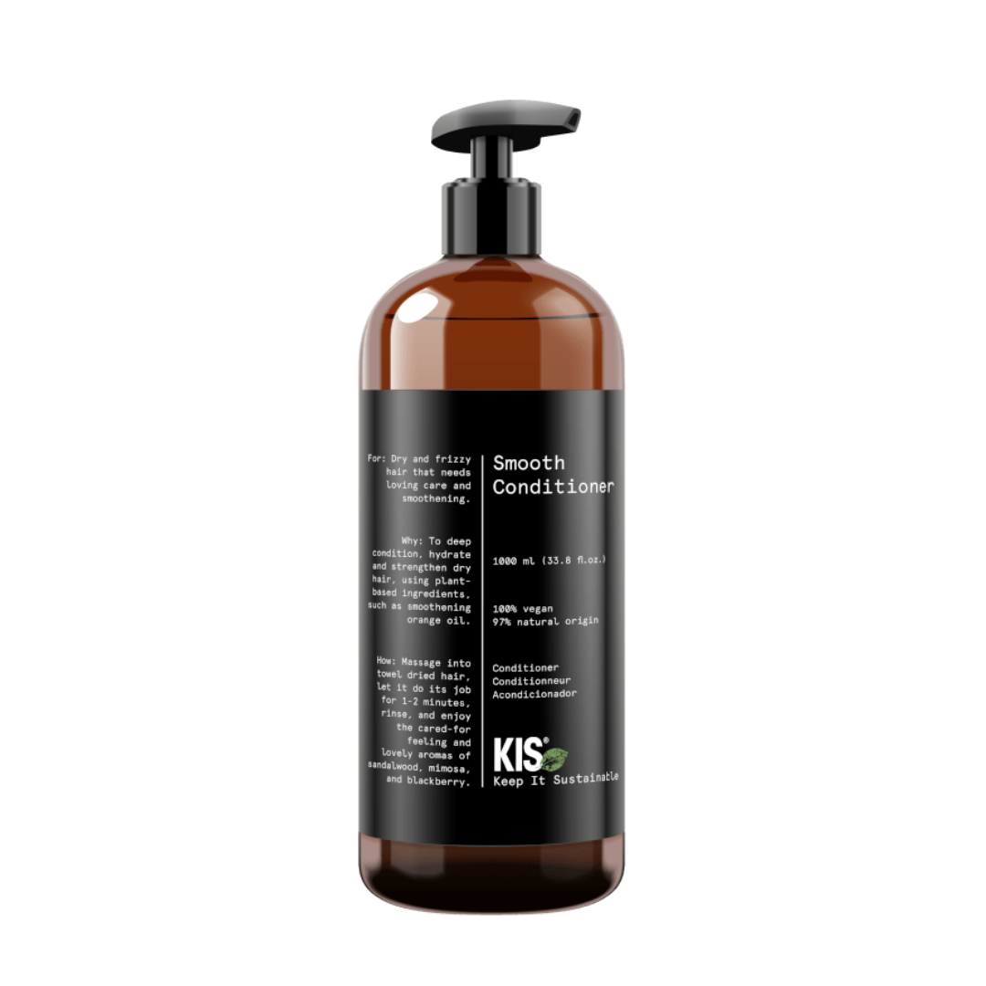 KIS Green Smooth Conditioner ist ein glättender Conditioner für frizz-anfälliges, widerspenstiges oder schwer zu bändigendes Haar zur regelmässigen Anwendung. Er pflegt Längen und Spitzen, macht das Haar leichter kämmbar und unterstützt ein ruhiges, glattes Haargefühl. Die 1000-ml-Grösse ist ideal für viel Nutzung oder Salon.