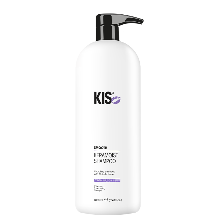 KIS KeraMoist Shampoo ist ein Feuchtigkeits-Shampoo für trockenes oder strapaziertes Haar. Es reinigt sanft und hilft, dass sich Längen nach der Wäsche geschmeidiger anfühlen, ohne sie unnötig auszutrocknen. Die 1000-ml-Grösse ist ideal für regelmässige Anwendung oder Salon.