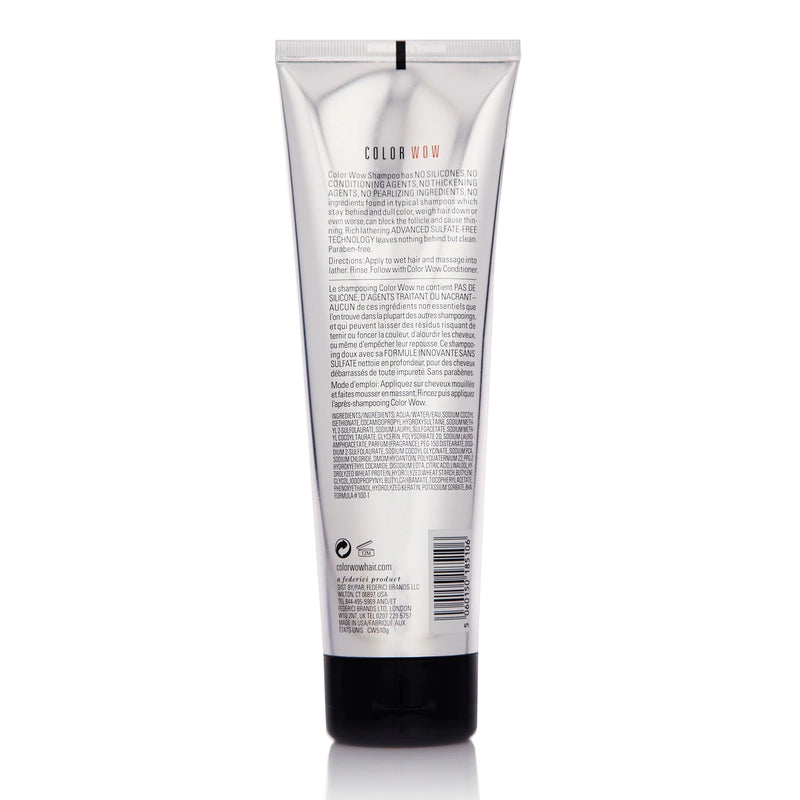 In das nasse Haar einmassieren, aufschäumen und gründlich ausspülen. Für optimale Ergebnisse mit Color Wow Color Security Conditioner kombinieren.