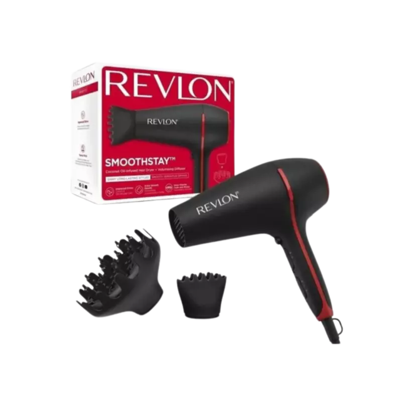 The Revlon Tools Smoothstay Coconut Oil-Infused Hair Dryer is an innovative professional hair dryer that combines powerful blow-drying with conditioning technology. Thanks to ceramic-coated air outlets enriched with coconut oil, hair is nourished while drying, reducing frizz and achieving a smooth, shiny look.
