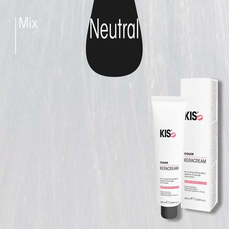 KIS KeraCream Color Neutral is a neutral mixer shade. It’s used to soften color results, dilute reflects, and fine-tune formulas without adding a dominant tone direction.