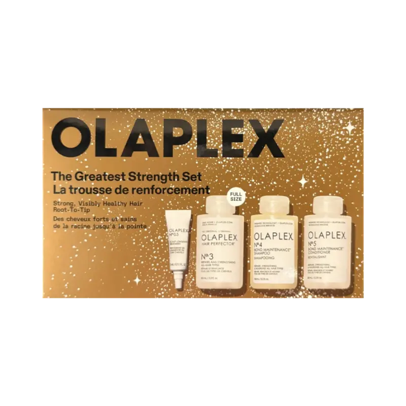 Das Olaplex The Great Strength Set ist das ideale Pflegepaket für stark geschädigtes oder strapaziertes Haar. Es kombiniert die beliebtesten Olaplex-Produkte zur intensiven Reparatur, Stärkung und Pflege der Haarstruktur für sichtbar gesünderes, glänzenderes und widerstandsfähigeres Haar.