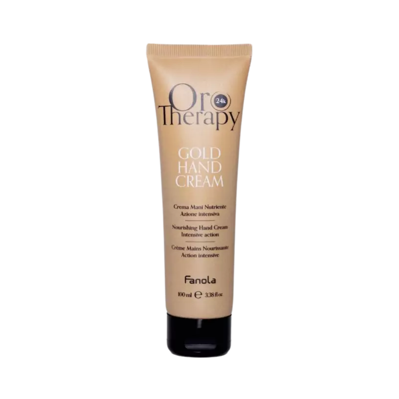 Die Fanola Oro Therapy 24K Gold Hand Cream ist eine luxuriöse Handpflege mit einem Hauch von 24-karätigem Gold. Angereichert mit Arganöl, Keratin und Mikropartikeln aus Gold, regeneriert sie trockene und beanspruchte Hände, spendet intensive Feuchtigkeit und hinterlässt ein seidiges, strahlendes Hautgefühl. Die reichhaltige Formel schützt die Haut vor Umwelteinflüssen und sorgt für geschmeidig-weiche Hände mit einem dezenten, edlen Glanz.