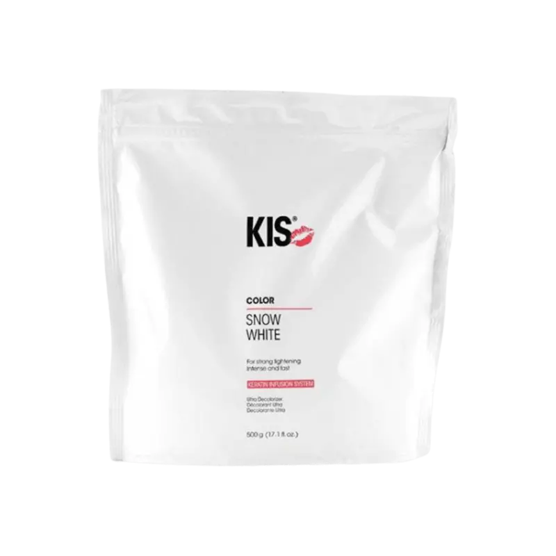 KIS Bleach SnowWhite Blondierpulver, 500 g, ist ein professionelles Blondierpulver für starke, gleichmässige Aufhellungen von bis zu ca. 6–7 Tonhöhen, abhängig von Ausgangshaar, Entwicklerstärke und Einwirkzeit. Die staubarme, cremig mischbare Formel ermöglicht kontrollierte Ergebnisse mit klaren, hellen Blondtönen. Geeignet für Strähnen, Freihand-Techniken und komplette Blondierungen im Salonbereich.