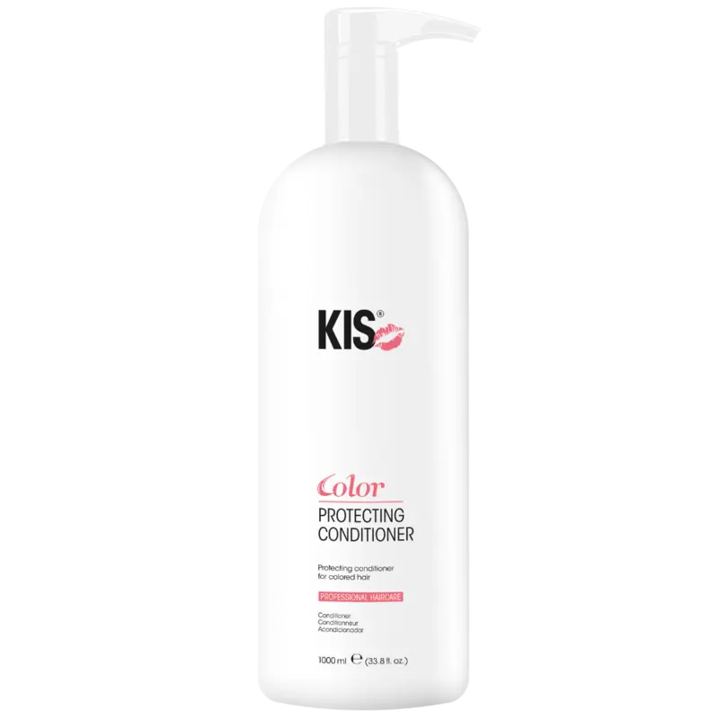 KIS Color Protecting Conditioner ist ein Conditioner für coloriertes Haar, der die Längen nach dem Waschen geschmeidiger macht und das Haar leichter kämmbar werden lässt. Die 1000-ml-Grösse ist ideal für regelmässige Anwendung oder Salongebrauch, wenn du Farbhair gepflegt und ruhig wirken lassen willst.